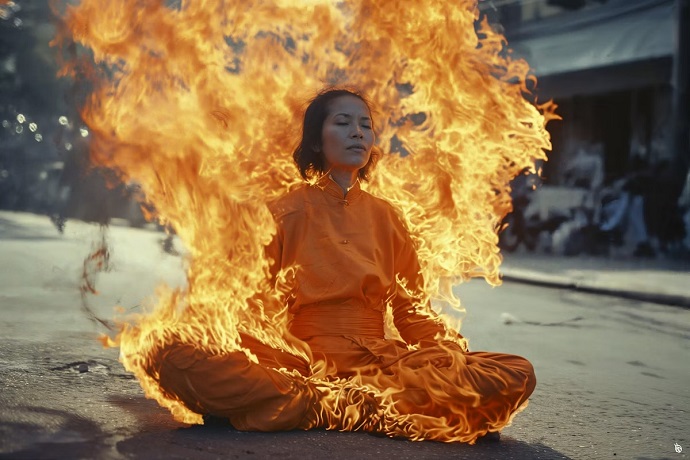 • Tự hỏa táng người sống như thế là một điều khủng khiếp và cực kỳ can đảm. Rất ít người trên thế giới có thể làm được. Thực tế thì có nhiều cách ra đi nhẹ nhàng hơn, như là một liều thuốc độc cho người ta ngủ và từ từ đi vào cõi chết. Nhưng có lẽ Eshun nghĩ: “Tôi muốn đi với một thể xác thanh tịnh, không có độc tố nào trong đó.”