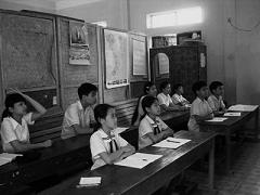 Cô Thanh dạy văn bước vào, làm cả lớp đang ồn như cái chợ vội im bặt, cuống quýt đứng dậy chào.