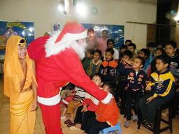 Không khí đêm vui Noel giúp các em tự tin hòa mình vào cuộc trình diễn các tiết mục văn nghệ đặc sắc, những màn biểu diễn thời trang dí dỏm. Đội văn nghệ khiếm thị của trường chuyên biệt Vi Nhân đóng góp những ca khúc tha thiết xúc động cả hội trường. Chị Võ Thị Ngọc, Chủ nhiệm Đội Công tác xã hội lau nước mắt : “ Đến với các em bọn mình thấy đêm Noel càng ý nghĩa hơn”. Em Nguyễn Văn Phú học sinh khiếm thị tại trường chuyên biệt Vi Nhân sau khi hào hứng chơi thổi bong bóng vui vẻ khoe “Em thắng rồi, ước gì mỗi năm đều có nhiều đêm Noel như thế này !”. Các em còn được tặng nhiều món quà Noel gồm áo ấm, nhu yếu phẩm, bánh kẹo…trị giá hơn 6 triệu đồng. Ông Già Nô En tặng quà cho các em khuyết tật