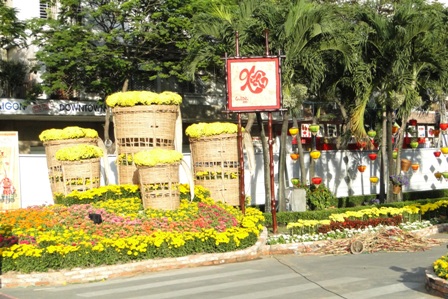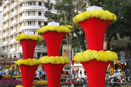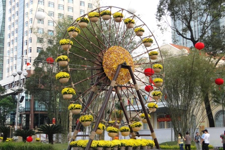 Mấy năm gần đây, Nguyễn Huệ là một địa chỉ không thể thiếu của người dân thành phố trong mấy ngày Tết. Đường hoa Nguyễn Huệ đã trở thành một thương hiệu, một biểu trưng cho văn hoá Sàigòn. Chắc không chỉ có tôi chờ đợi ngày đường Nguyễn Huệ bị phong toả làn xe hơi, quây kín lại để thực hiện đường hoa. Thỉnh thoảng, tôi lại cố tình chạy chầm chậm qua đường hoa, tò mò nhìn sâu vào bên trong qua những khe hở, ngắm lén, ngắm sớm đường hoa trước ngày khai mạc … Càng ngày đường hoa Nguyễn Huệ càng chuyên nghiệp hơn, thật sự là nét văn hoá- du lịch gắn liền với các hoạt động lễ hội ngày Tết phong phú. Ngoài hoa được tạo hình đa dạng bằng nghệ thuật sắp đặt, cả phong cảnh, sinh hoạt, đời sống đời thường cũng được thể hiện trên đường hoa. Những chú nông dân trong bộ bà ba đen ngồi xếp những chú cào cào bằng lá dừa nước, những câu đối được thầy đồ nắn nót trên giấy dó, những cụ già ngồi nắn tò he sặc sỡ, những quán chè tươi bày đâu đó dọc đường hoa.. luôn thu hút sự thích thú và chú ý của nhiều người, đặc biệt là du khách nước ngoài.
