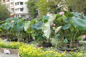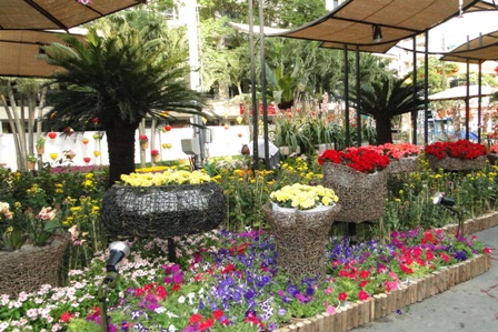 Năm nay là năm thứ chín, kể từ tết Giáp Thân 2004, đường hoa Nguyễn Huệ là địa chỉ được mong đợi, là một trong những điểm vui chơi giải trí của người dân thành phố. Chiều mai, 28 âm lịch, đường hoa mới hoàn tất những công đoạn cuối cùng để cống hiến vẻ đẹp tuyệt vời cho người dân thưởng lãm. Mình chưa có trong tay những bức ảnh của một đường hoa hoàn thiện. Tuy nhiên, hôm nay, chiều 27 tết, đến đường hoa vào ngày trước ngày khai mạc này, biết rằng đèn đã sáng 24/24 liên tục mấy ngày liền cho các anh chị công nhân làm việc quên ngày đêm trong khu vực đường hoa, rằng các anh chị nghệ nhân và công nhân đã phải ngủ lây lất trong những chòi tạm để kịp hoàn thành công trình, rằng có nhiều bác công nhân đang tranh thủ chợp mắt ngay trong cái nắng nóng sau bao giờ vất vả, tôi thật sự cảm kích những giọt mồ hôi đã âm thầm đổ xuống cho đường hoa lộng lẫy. Từ công sức của người nông dân tính toán, chăm chút sao cho hoa nở vừa kịp tết, đến những thương nhân (đa phần là chính các chủ vườn) chèo chống con thuyền đưa hoa từ quê lên thành, từ các nhà thiết kế hình dung một đường hoa trong mơ, đến các công nhân thực hiện từng thao tác chi tiết để giấc mơ đó thành hiện thực.