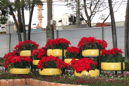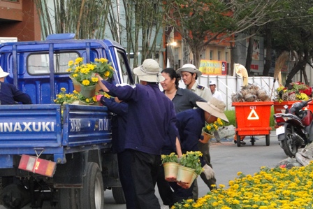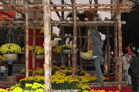 Với những tấm hình dưới đây, mình muốn giới thiệu với các bạn nét đẹp (tuy chưa hoàn chỉnh) của đường hoa, cùng nỗi vất vả của các anh chị nghệ nhân và công nhân củà Sàigòn Tourist, đơn vị chủ quản thực hiện đường hoa Nguyễn Huệ. Mình rất tự hào là những người dân thành phố, cũng như tất cả các bạn tỉnh khác về thăm đường hoa Nguyễn Huệ, đều biết yêu cái đẹp và biết trân trọng công sức của những người làm ra cái đẹp, nên chỉ có hoa bị héo tàn sau mấy ngày dãi nắng dầm sương, chứ chưa bao giờ có ai nhẫn tâm vùi hoa dập liễu…