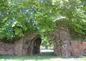 Chúng tôi đến Cửa Tây. Phần mặt bằng ngay trên cửa không còn, chỉ còn phần vòm cong. Bên ngoài thành là đồng ruộng khá màu mỡ, những mái nhà xa xa màu ngói mới. Sát chân thành nhiều khối đá ngổn ngang, hai cây cau vươn cao. Phía trong vòm cong có hai đường rãnh, có lẽ dùng lắp các cánh cửa. Từ Cửa Tây chúng tôi đi qua Cửa Đông bằng con đường thẳng góc với trục Nam-Bắc lúc nãy thành chữ thập. Trong vòng thành ruộng xen lẫn với nhưng ao nước tưới. Những luống cao trồng bắp, giữa các luống là rãnh sâu xuống, trồng đủ loại rau. Tất cả một màu xanh hiền lành, dễ thương…