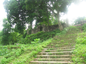 Sử ký Giáo khoa thư lớp Sơ đẳng có hình vẽ thành nhà Hồ. Nhớ lại, trong trí tưởng thấy nó nhỏ nhoi. Nhưng giờ này tôi thật sự ngạc nhiên, bởi không có một sự chuẩn bị trước cho tâm lý, chẳng hạn một cánh đồng rộng để nhìn thấy từ xa. Vừa mới hết xóm nhà thành xưa đã sừng sững trước mặt. Màu rêu phong đen sẫm phủ lên mặt đá khiến cho phế tích vừa uy nghi, đường bệ vừa lạnh lùng, hoang vắng.